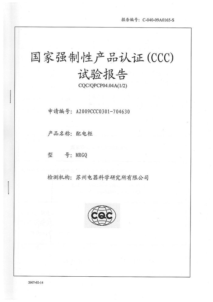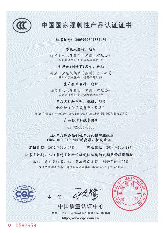 (成套)MRGQ主母線資質證書