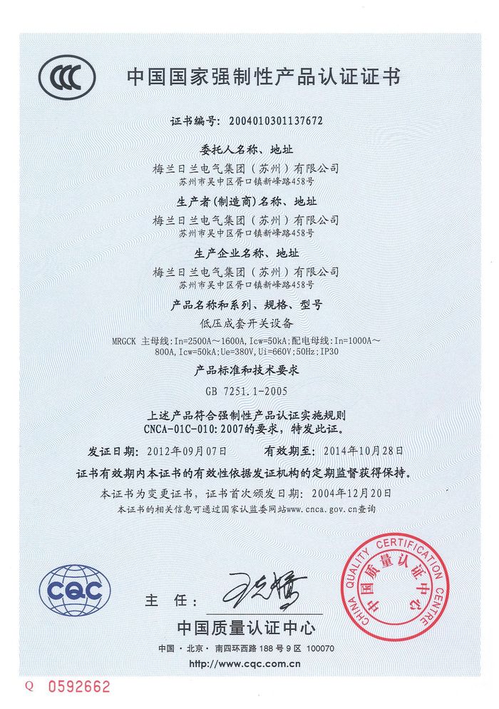 (成套)MRGCK主母線資質(zhì)證書