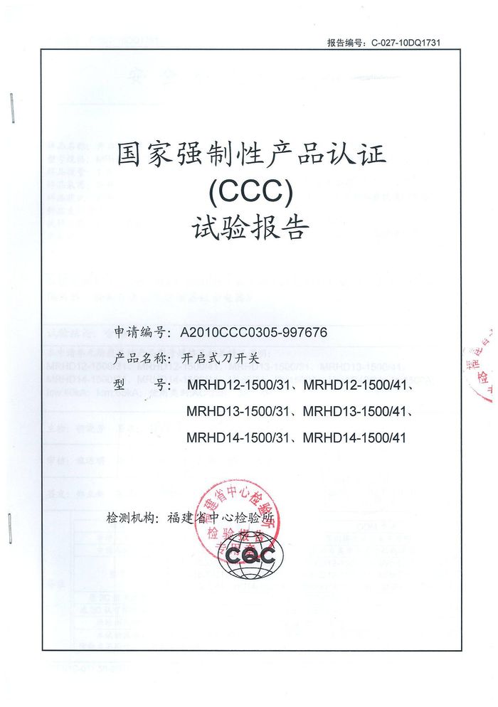 MRHD13-開啟式刀開關(guān)資質(zhì)證書
