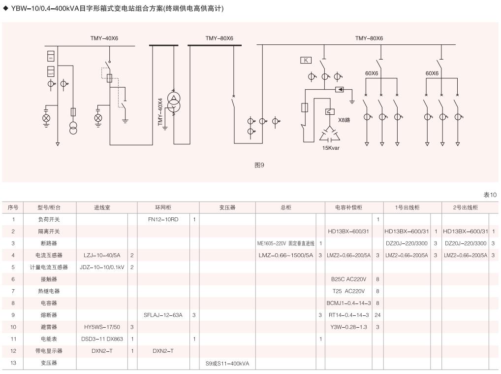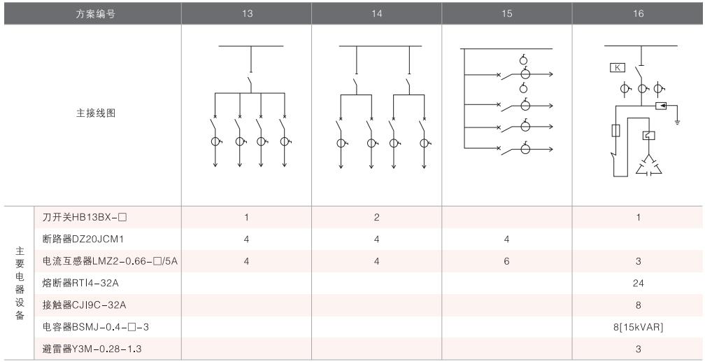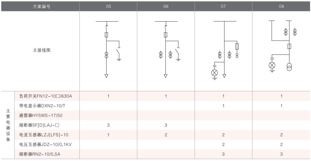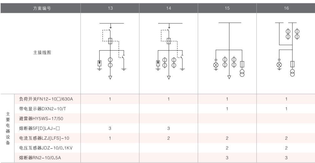 表6~列舉了一些典型組合接線(xiàn)方案,供用戶(hù)和設(shè)計(jì)單位參考。(以配裝壓氣式負(fù)荷開(kāi)關(guān)為例)