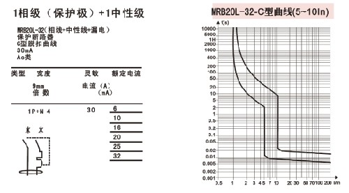 額定電流: (30℃)6A,lOA,16A,20A,25A,32A