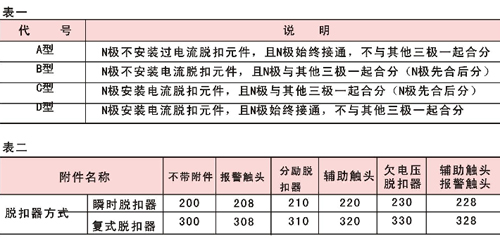 訂貨時必須寫明:產(chǎn)品名稱、型號、規(guī)格、極數(shù)、脫扣方式及附件名稱、保護特性、額定電流、額定剩余動作電流,訂貨數(shù)量。