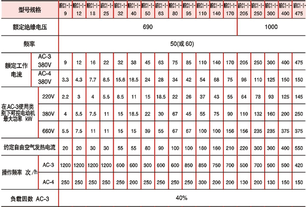 注:熱過載繼電器的整定電流應≤接觸器的額定工作電流,吸引線圈電壓的其它規(guī)格可特殊定貨。