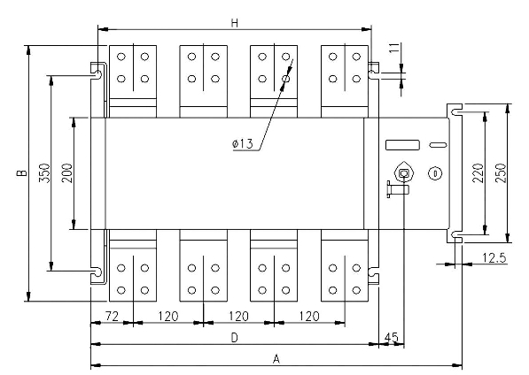 | MRQ2-1250/3 | 505 | 356 | 370 | 378 | 200 | 295 | 470 | 220 | 11 | 50 | 120 | 80 | 8 | 13 | 108 | 250 |