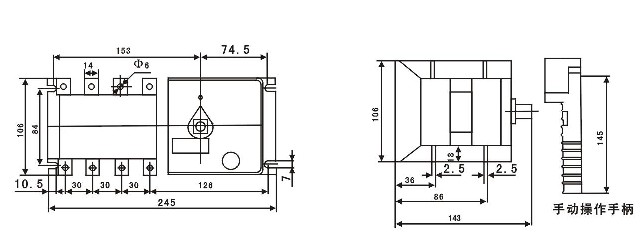MRQ2/G開關整體設計為金屬外殼,小巧堅固。MRQ2/G開關,控制部分為金屬外殼,開關部分采用玻璃纖維不飽和聚脂樹脂制造外殼,有較強的介電性能,防護能力和可靠的操作安全性。